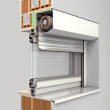 Dieses Rollladensystem zeichnet sich durch seine fünfeckige Frontblende aus. Es kann vor das Fenster auf die Laibung gesetzt werden und schließt somit optimal flächenbündig mit der Hausfassade ab. Die Revisionsblende kann wahlweise groß und nach vorne oder kleiner und nach unten geöffnet werden.